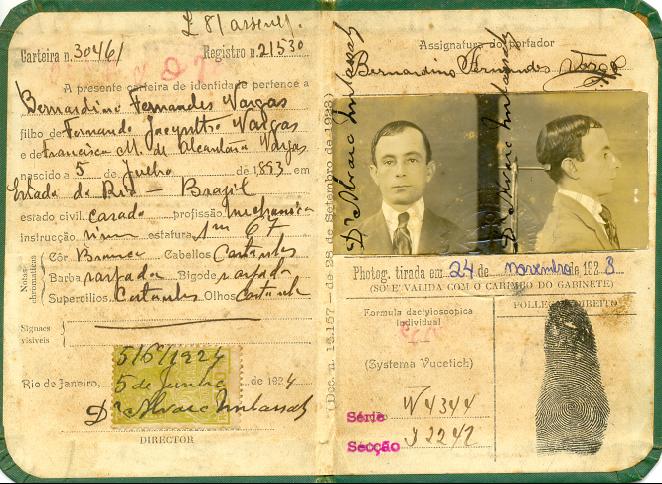 (Foto: Carteira de trabalho de Bernardino Fernandes Vargas)